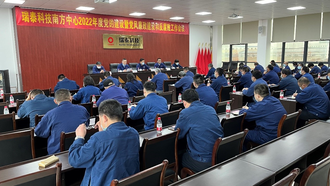 3月30日,瑞泰科技南方中心党委召开2022年度党的建设暨党风廉政建设和反腐败工作会议,传达国资委、集团、总院、总部党风廉政建设和反腐败工作会议精神,部署2022年度党的建设、党风廉政建设和反腐败工作,南方中心党委书记、总经理唐安山主持会议并作总结讲话。