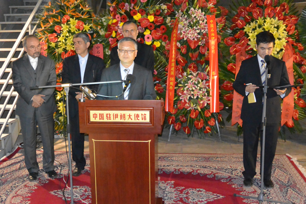 庞森大使在致辞中介绍了中国经济社会发展取得了举世瞩目的成就,高度评价了中伊关系,希望中伊双方以建设“一带一路”为契机,推动中伊双边关系不断取得进步。