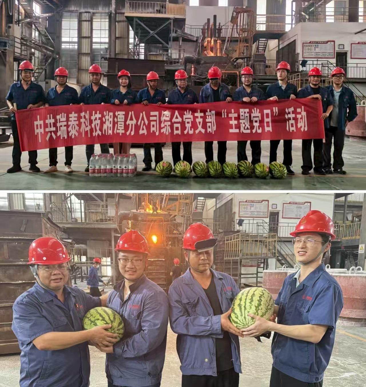 瑞泰科技湘潭分公司综合党支部心系一线员工,在车间内开展了送清凉活动。在车间现场将提前准备好的清凉物资矿泉水、西瓜等防暑降温物品送到每位员工手中。一线员工们接过清凉物资,脸上露出了真挚的笑容,纷纷表示感谢公司的关心和支持。