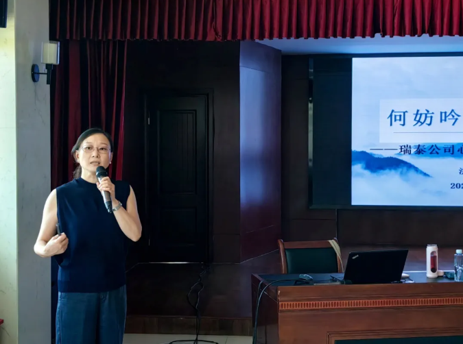 讲座以“何妨吟啸且徐行”为主题,围绕心理健康、压力调适与榜样引领展开。洪玲从认知模式、解释风格及情绪管理三个维度,系统阐述管理者应对压力的有效方法,并结合苏轼身处逆境豁达乐观的典型案例,激励大家提升心理韧性,为企业管理注入心理动能。