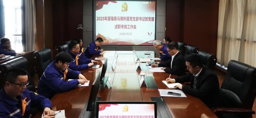 1月22日下午,瑞泰马钢党委组织开展2025年度党组织书记抓党建述职评议会。瑞泰科技党委书记、董事长陈荣建,瑞泰科技总经理助理陈磊,瑞泰马钢党政领导班子成员出席会议。会议由瑞泰马钢党委书记、总经理卢咏明主持。