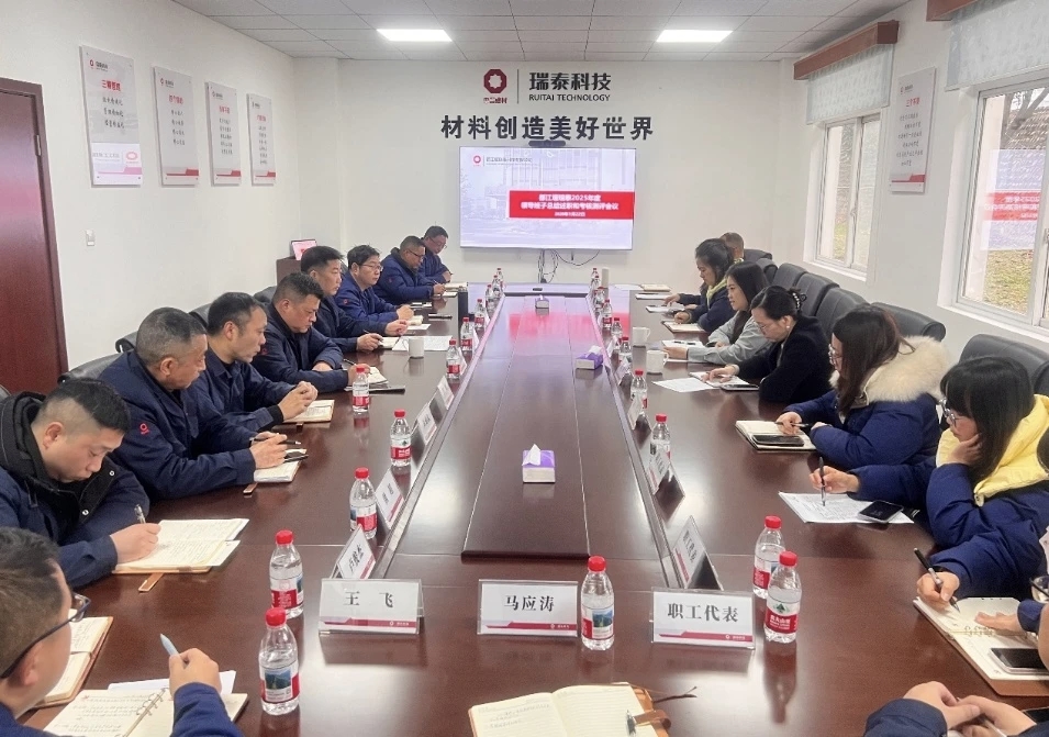 2026年1月22日,都江堰瑞泰召开2025年度领导班子述职暨考核测评会。瑞泰科技党委委员、纪委书记童若思,纪委副书记谭果代表总部考核组出席会议,都江堰瑞泰党支部书记、负责人何旺及公司领导班子成员、公司中层以上人员、职工代表参加会议。