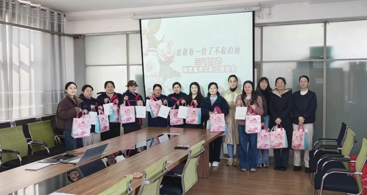 新绿三月、微风暖阳,在“三八”国际妇女节来临之际,为致敬瑞泰盖泽全体女职工的辛勤付出,传递企业关怀,3月6日下午,由瑞泰盖泽工会、妇委会主办的“致敬每一位了不起的她”三八妇女节座谈会在F座会议室温情启幕。瑞泰盖泽党支部副书记、副总经理朱韬、工会委员王宜贤、生兆波与全体女员工齐聚一堂,共庆节日、共话成长。