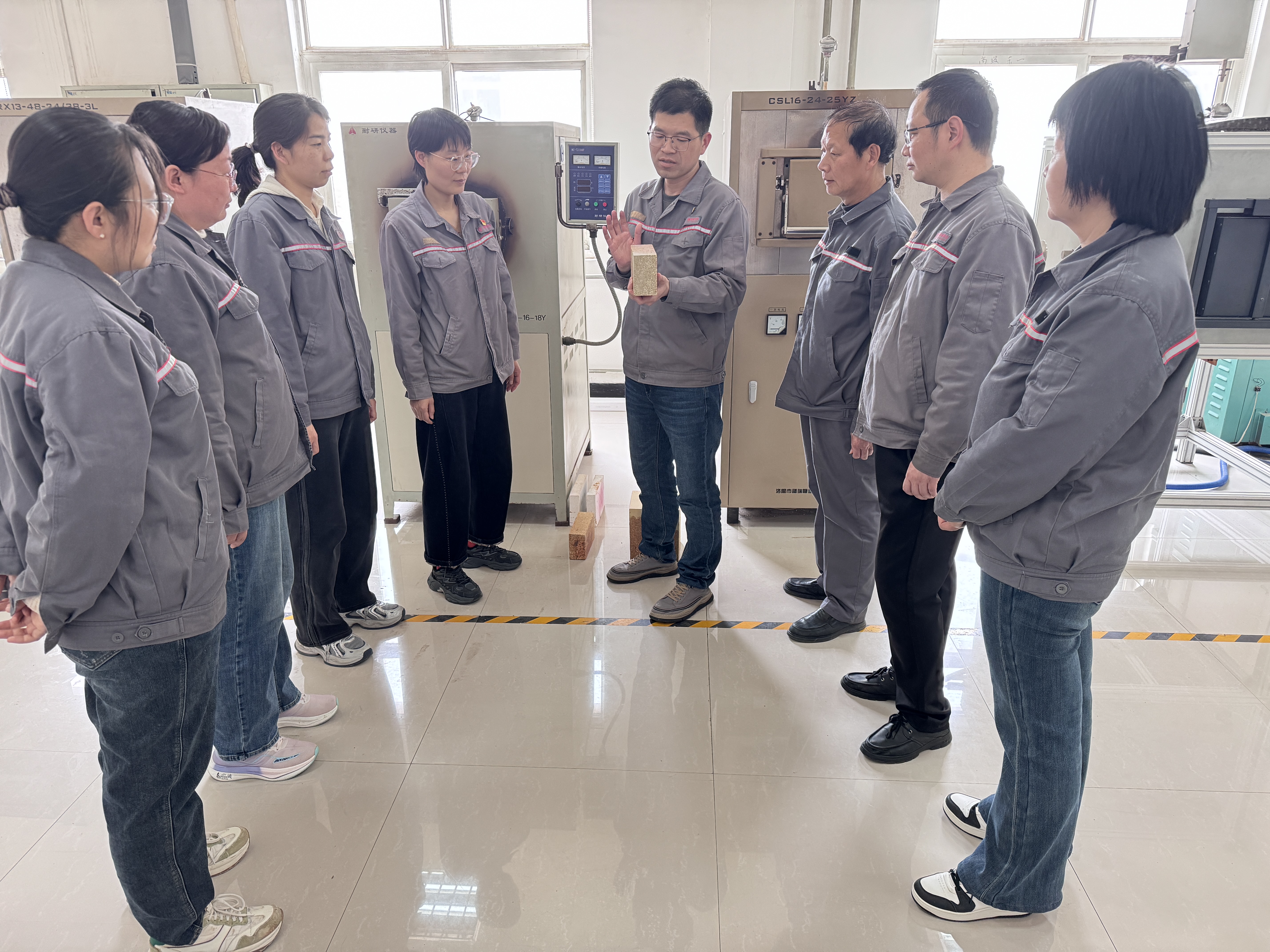 团队由郭学亮带领,周珍妮、张根亭等10名核心成员组成,其中高级工程师2名、中级工程师4名、助理工程师4名,形成了层次完备、实力过硬的专业技术梯队。这支深耕镁质耐火材料领域的攻坚队伍,先后承担公司十余项重点攻关项目,多次荣获郑州市及行业级科技进步奖项。