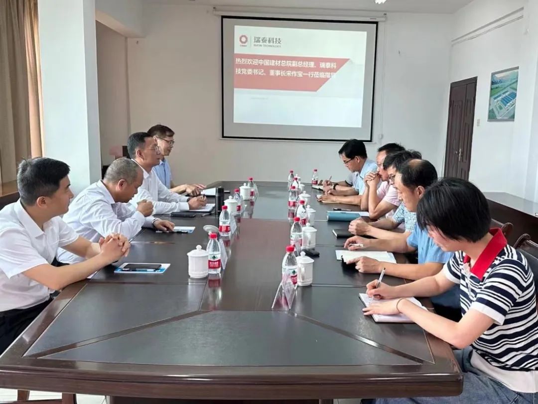 6月20日上午,中国建材总院党委委员、副总经理,瑞泰科技党委书记、董事长宋作宝到开源新材料调研。中国建材总院党委委员、专务曾大凡,瑞泰科技党委委员、副总经理陈荣建等陪同调研。