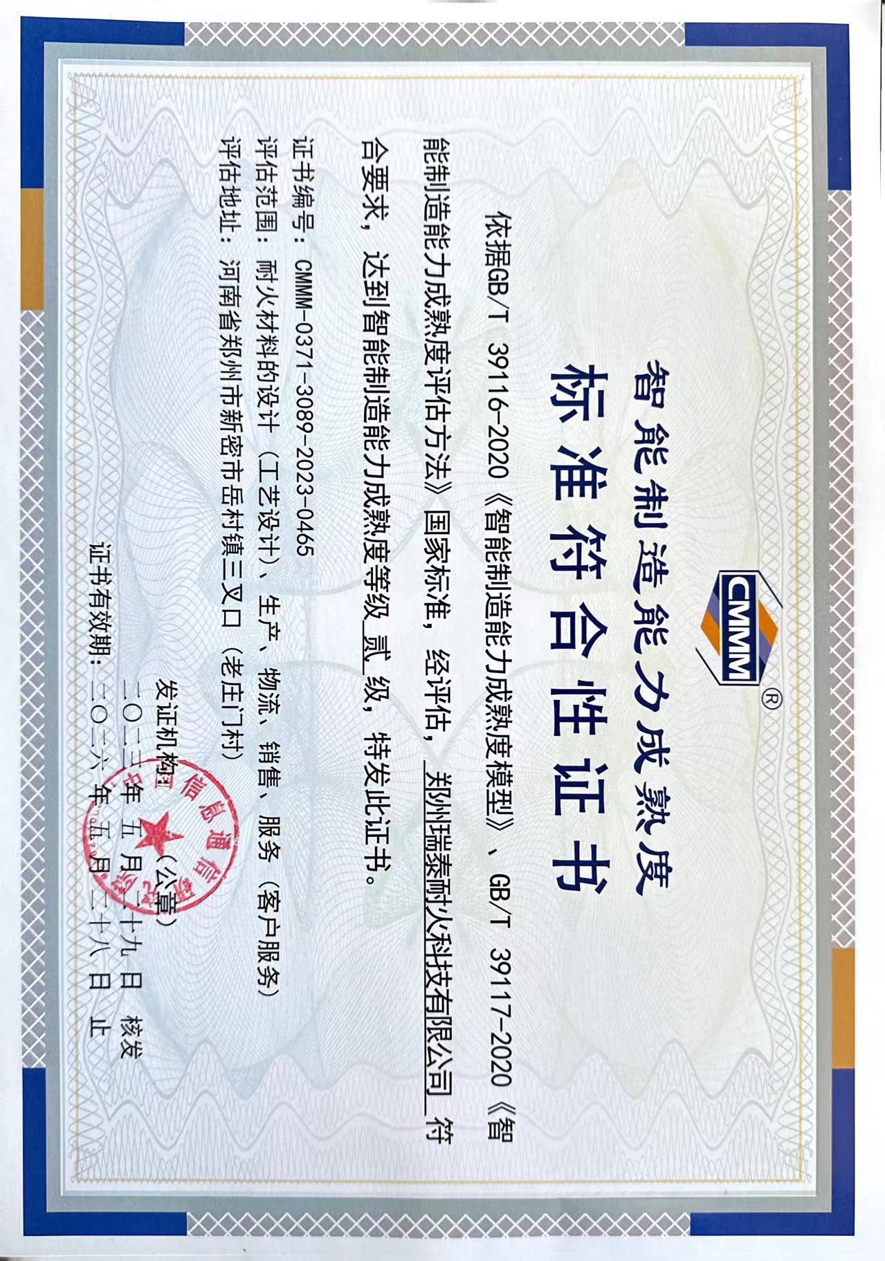 喜讯丨郑州瑞泰喜获“智能制造能力成熟度二级”证书