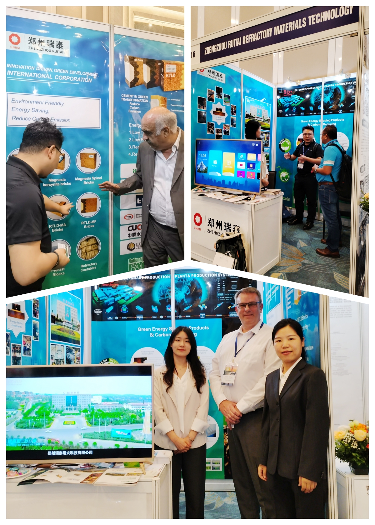 低碳耐材产品吸引了来自越南、泰国、中国、马来西亚、澳大利亚、丹麦、法国、德国、日本等国家的水泥企业,他们陆续来到郑州瑞泰的展台参观、询问或交流产品特点、在全球各地水泥市场的应用案例和使用效果。越南本土的一些知名水泥企业也借机纷纷邀约郑州瑞泰的耐材专家去各家综合工厂再做深度技术交流。