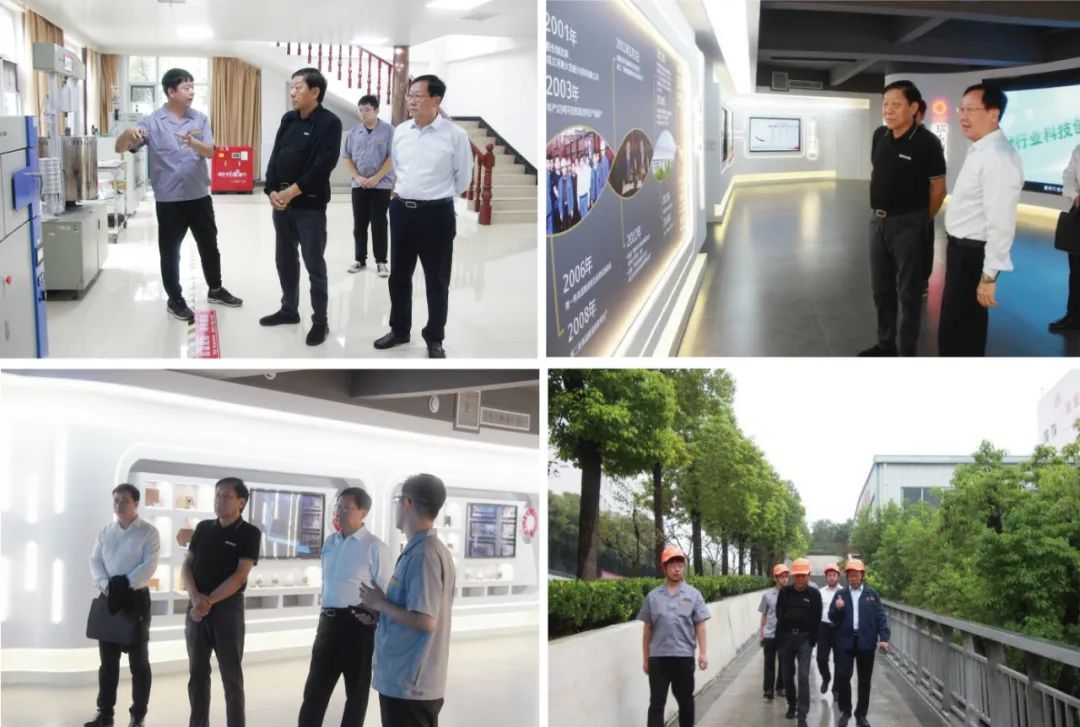 吕志坚会长一行在李泉侑董事长的陪同下参观了公司5G智能化多功能展厅、技术研发中心、智能化耐火材料生产线。