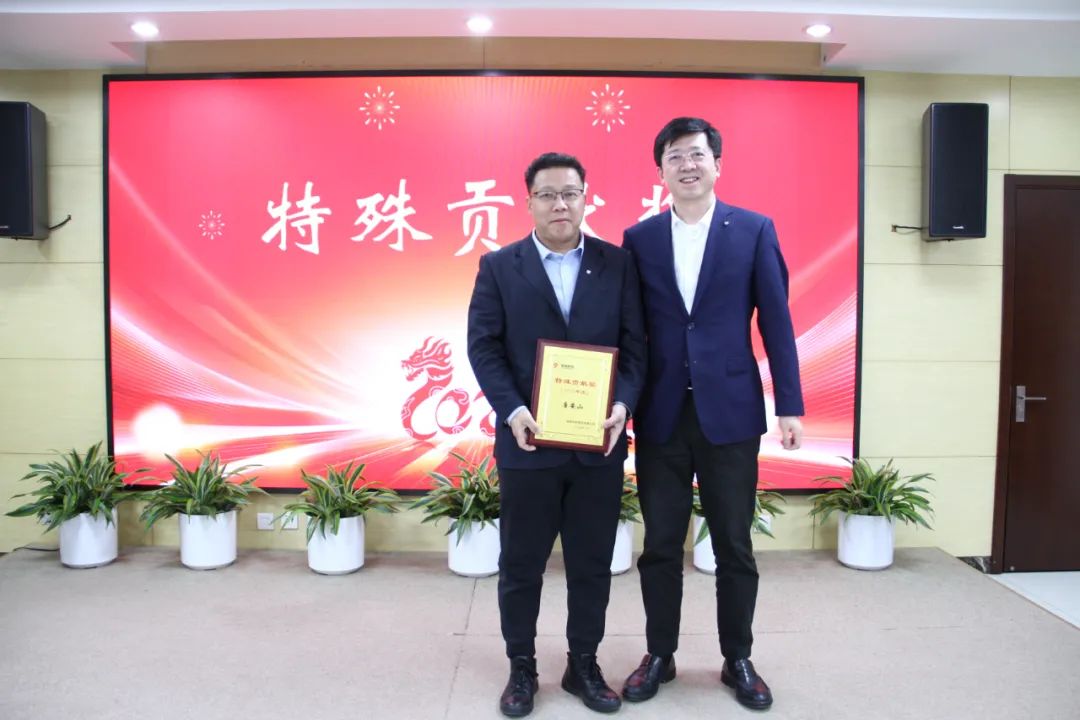 会上还表彰了先进集体和先进个人,宋作宝为获得2023年度优秀经营管理者的个人、张乃旺为获得2023年度优秀经营业绩奖的单位、郅晓为获得2023年度特殊贡献奖的个人颁发了奖牌。
