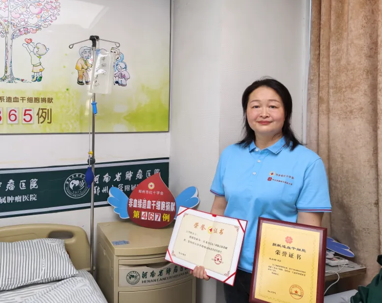 今年45岁的王兴粉是河南瑞泰耐火材料科技有限公司的一名员工,也是一名共产党员。从事销售工作的她经常天南海北到处跑,但繁忙的工作没有磨灭王兴粉奉献爱心的热情,她经常参加无偿献血,2021年11月,在一次无偿献血过程中,王兴粉通过工作人员讲解造血干细胞捐献知识,了解到普通人有数万分之一的几率能够与血液病患者配型成功,她当即签下同意书,登记成为造血干细胞捐献志愿者。