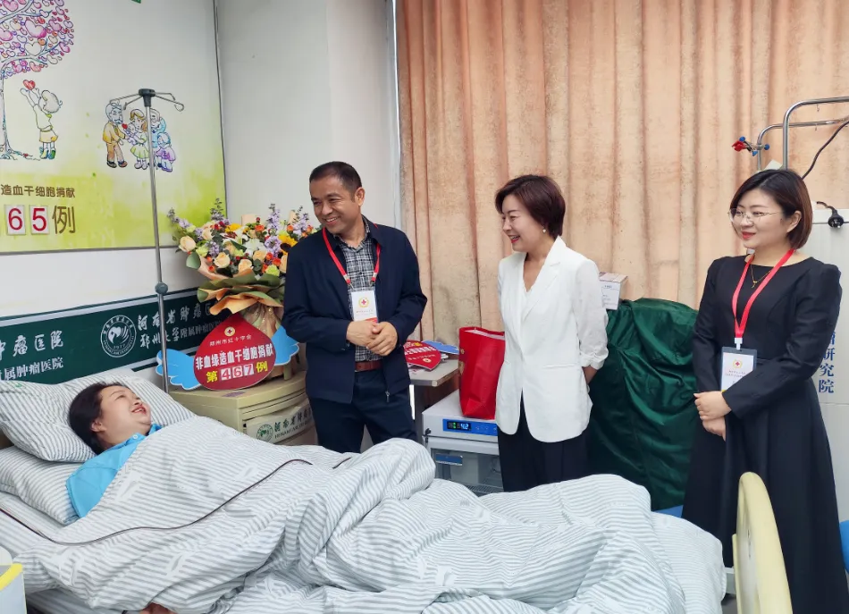 郑州市红十字会党组成员、副会长张晓煜,郑州市红十字会捐献服务和应急救护培训中心负责人李宁,新密市红十字会副会长秦晓飞到场看望慰问王兴粉