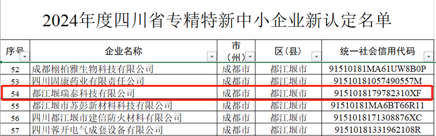 喜讯|都江堰瑞泰被认定为四川省专精特新中小企业