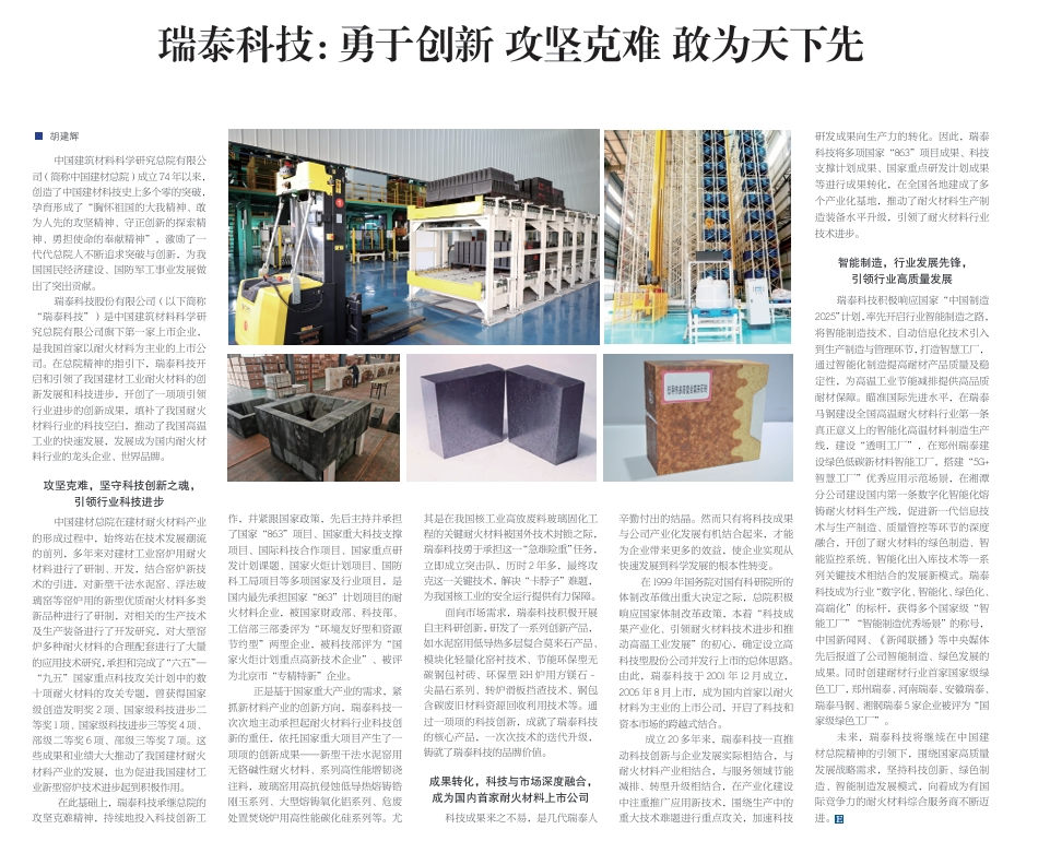 媒体聚焦 | 瑞泰科技:勇于创新 攻坚克难 敢为天下先