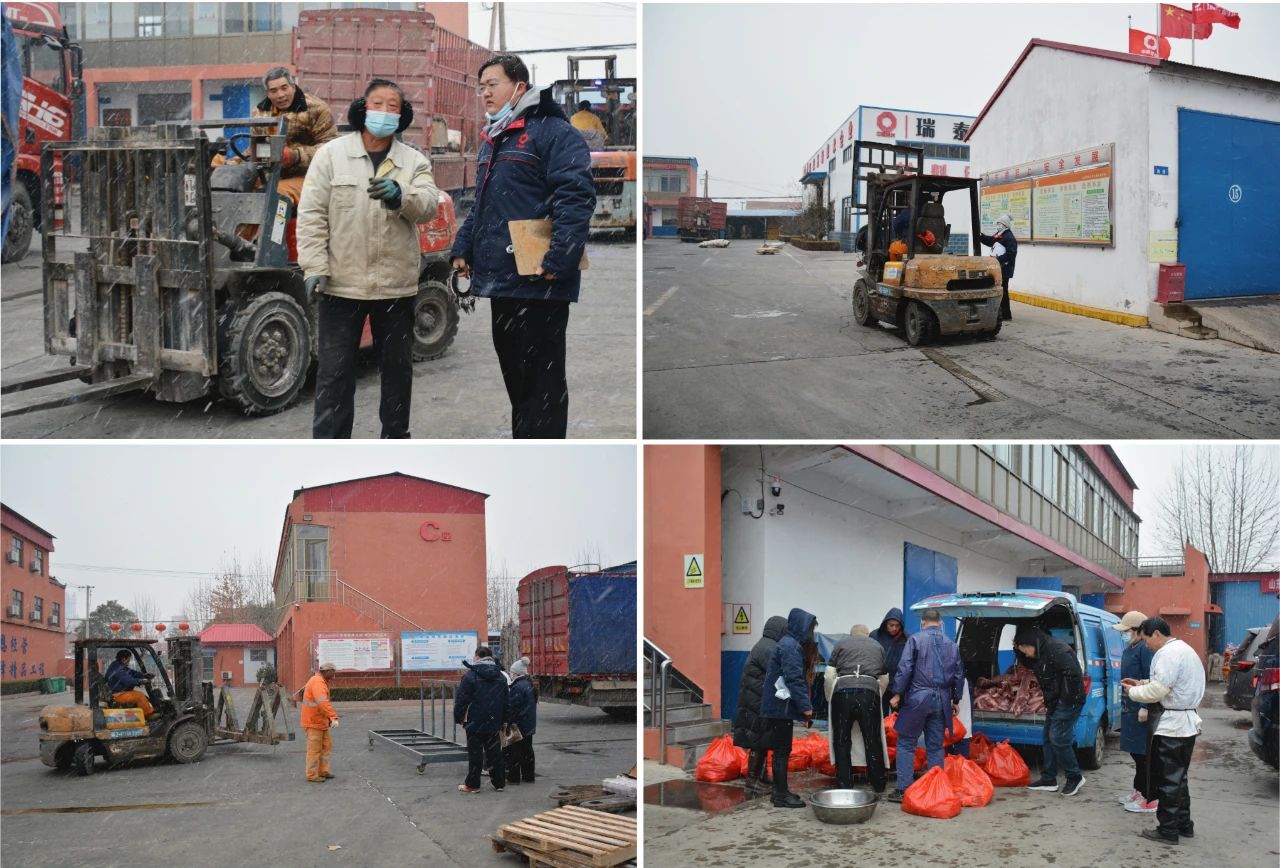 与此同时,为了更好地服务公司全体员工,做好公司春节期间值班人员的饮食保障,让大伙都能感受到瑞泰盖泽大家庭的温暖年味,他们不畏严寒,将新鲜的蔬菜、肉类迅速复称、登记入库,并做好食堂使用的安排调度。