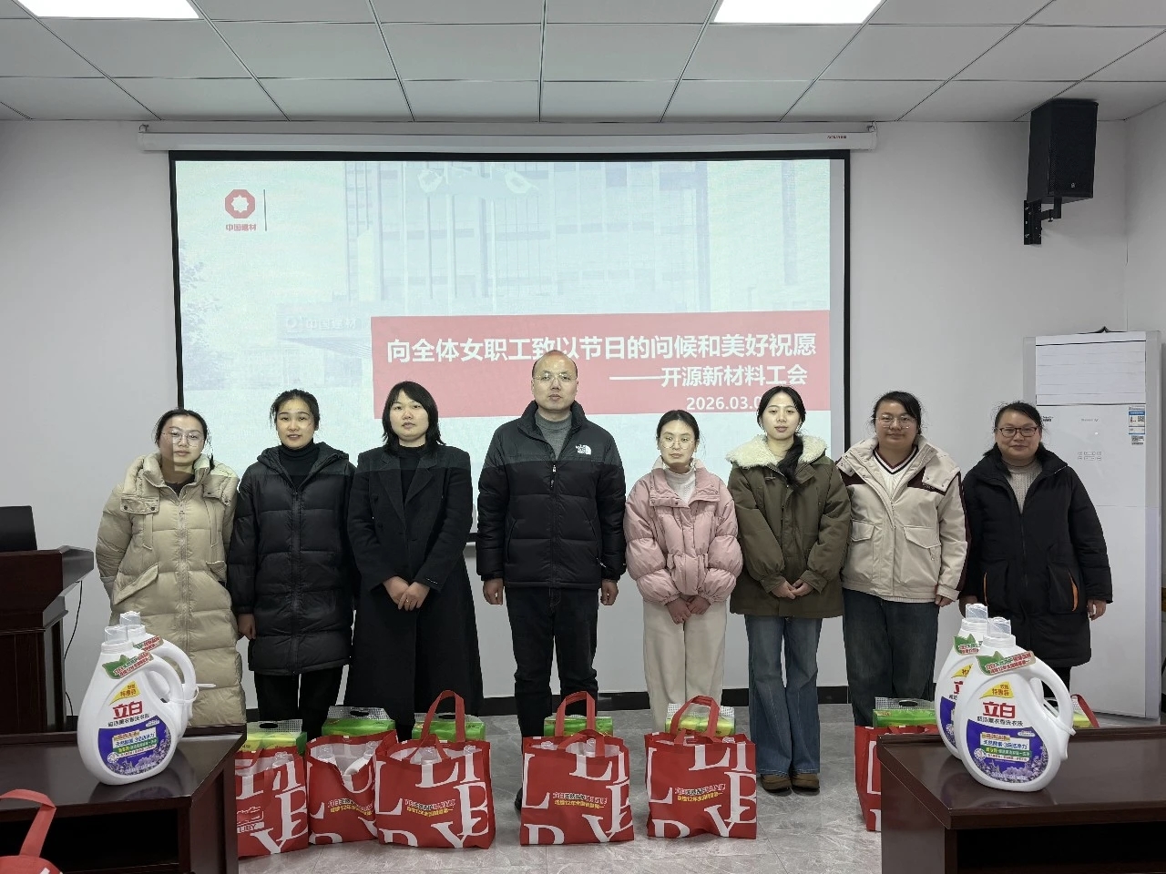 春风送暖,巾帼芳华。在第116个“三八”国际妇女节来临之际,为切实传递工会“娘家人”的关怀与温暖,3月6日,安徽中建材开源新材料科技有限公司工会精心组织开展女职工节日慰问活动,为公司17名女职工送上实用慰问品,向奋战在各个岗位上的女职工致以节日的问候和美好的祝福。