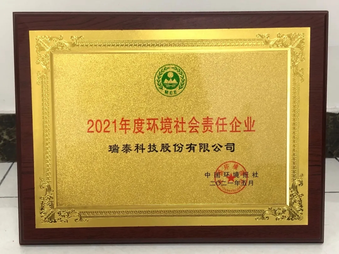 瑞泰科技获评“2021年度环境社会责任企业”