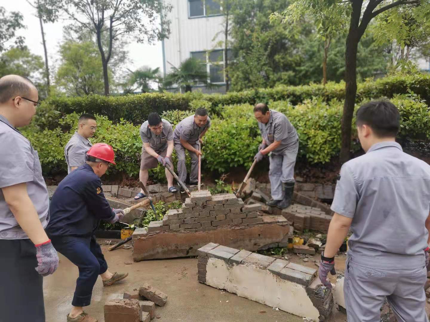 此次暴雨过程中,党委立即召开会议,迅速成立防汛工作领导小组,要求所有员工在公司住宿,避免上下班过程中出现危险,安排人员24小时对厂区巡逻检查,同时在党员干部带领下,郑州瑞泰员工坚守厂区,积极参加防汛工作,全力保障厂区安全。