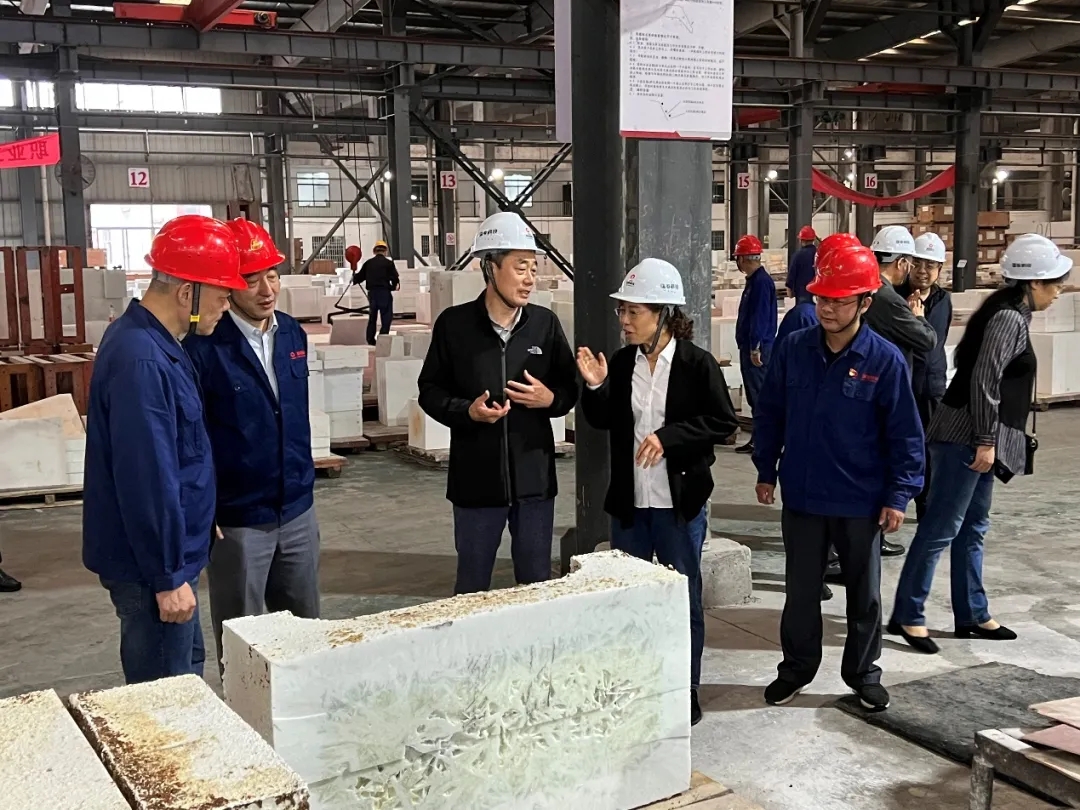 王益民现场考察了瑞泰科技湘潭分公司电熔耐火材料加工车间,对生产现场管理、职业健康、安全环保等工作的落实情况提出了要求,并听取了湘潭分公司总经理刘立秋关于公司当前生产经营、党建工作、“十四五”战略思想、科技创新和成果转化等情况的工作汇报。
