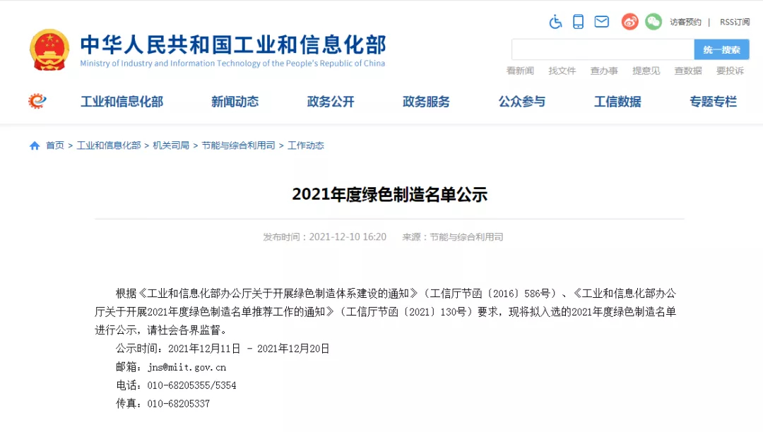 瑞泰马钢入选工业和信息化部2021年度绿色制造名单
