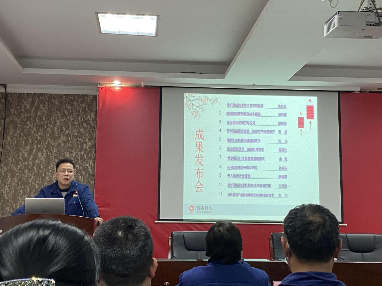 2022年1月14日(星期五)下午14时,湖南湘钢瑞泰科技有限公司第十二届技术、管理成果发布会在湘钢瑞泰生产管控楼一会议室举行。