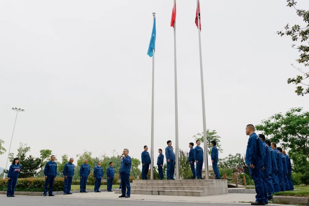上午9点19分,公司在创新大楼前举行升旗仪式,拉开了全天活动的序幕。中层以上管理人员、技术业务骨干和部分员工代表,齐唱国歌,雄壮的国歌声中,鲜艳的五星红旗在瑞泰科技与马钢公司的司旗拥簇下,徐徐升起。