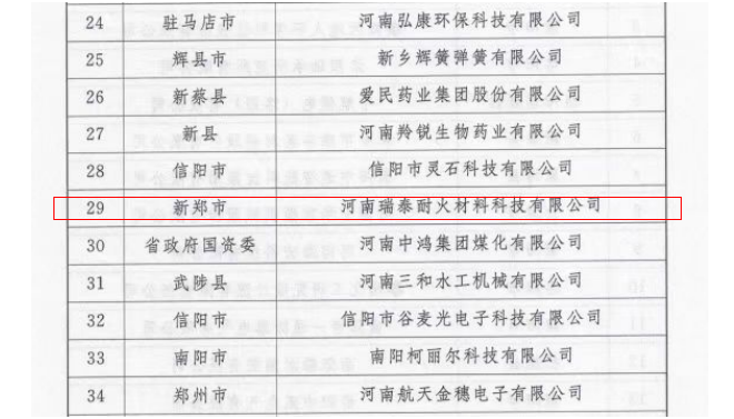 河南瑞泰被认定为“河南省技术创新示范企业”