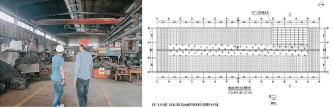 在开源耐磨,因为工艺的特殊性,原厂房屋顶遭到严重腐蚀,厂房顶频繁维修。之前,许多新能源企业望而却步。现针对此类高温多尘环境设计了专用方案:加固钢结构、拆除彩钢瓦、加铺新型光伏。试验成功后可以推广至行业类似应用场景,拓宽新能源项目的建设范围,实现成员企业降低厂房维护成本和绿电节炭双赢。