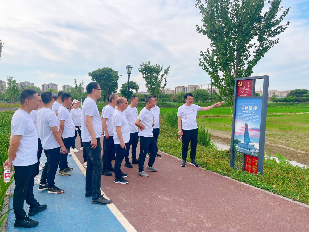 健跑活动结束后,全体成员还参观了党史红色步道,追随着步道沿途的展板,一块块展板被巧妙融入百年红色记忆中。学习百年党史,建设美好中国,以“党建红”引领“生态绿”,坚守初心、奋力前行,做美好中国的建设者、守护人。