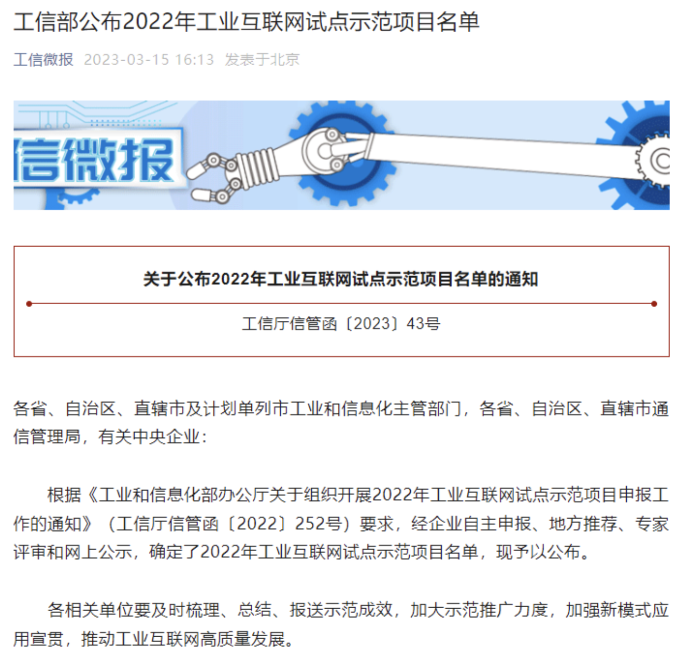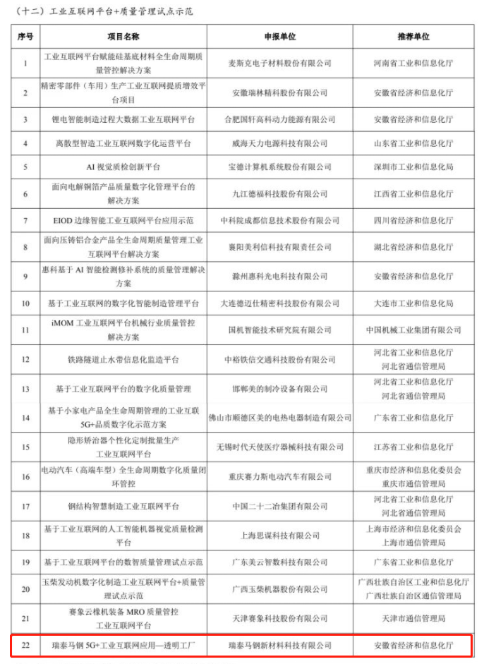 喜报 | 瑞泰马钢入选工信部2022年工业互联网试点示范项目名单