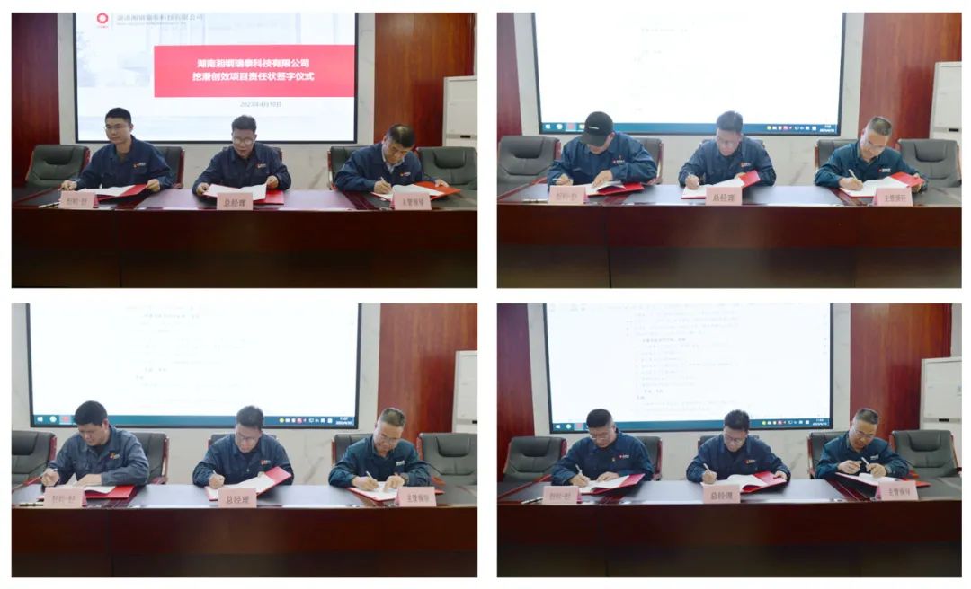 大会最后举行了挖潜创效责任状签字仪式,营销服务中心、技术质量中心、生产制造中心、采购供应部的负责人与主管经理、总经理签订了挖潜创效责任状,并举行了集体宣誓。