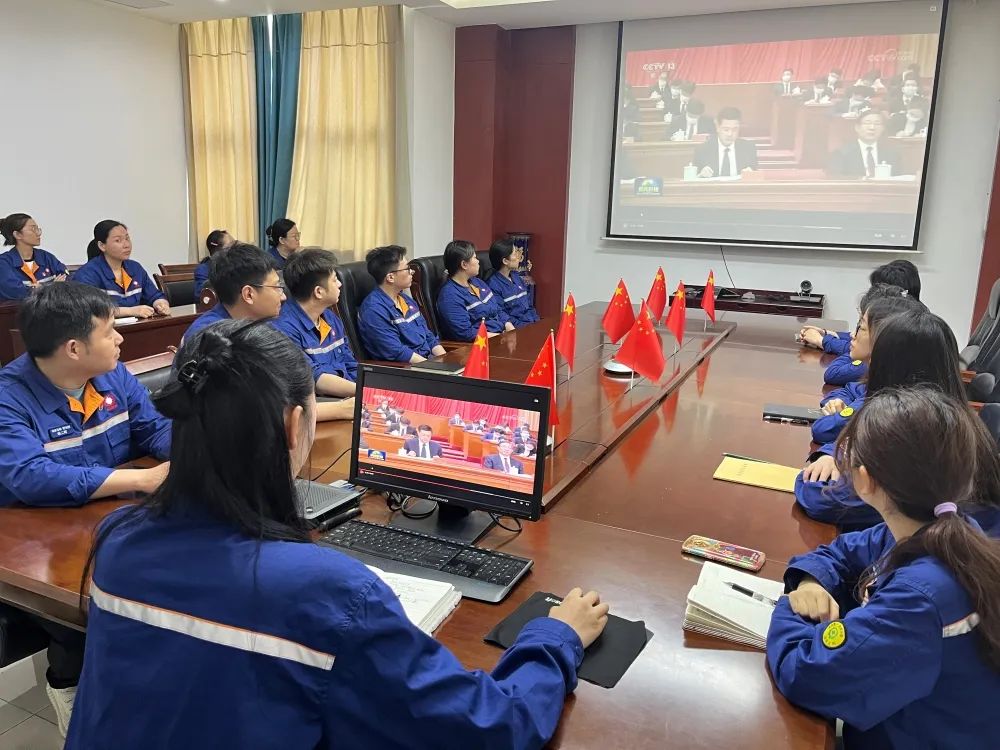 瑞泰马钢团委组织专兼职团干部代表及部分团员代表集体观看大会开幕会。会后,公司团委第一时间组织学习研讨大会精神。