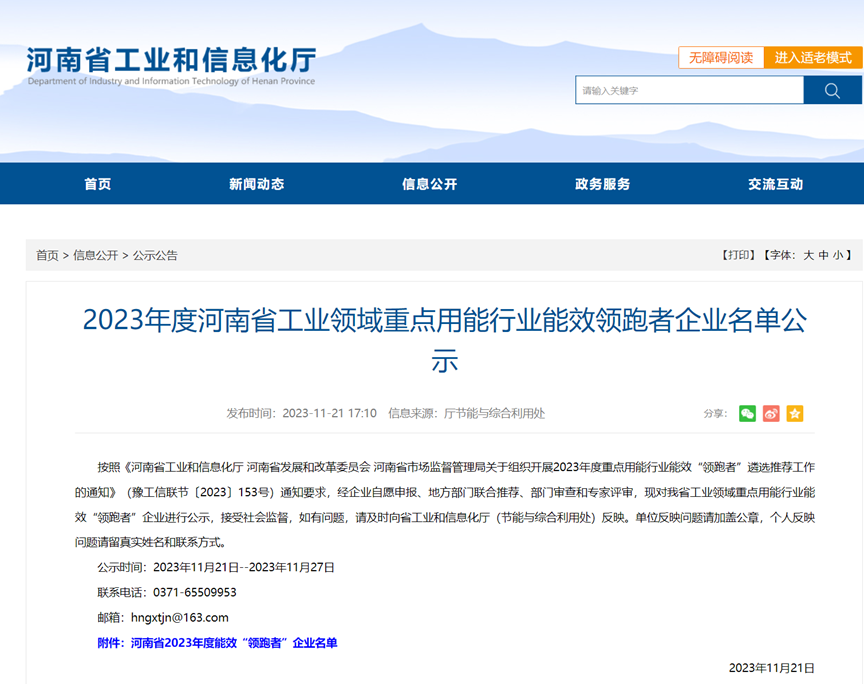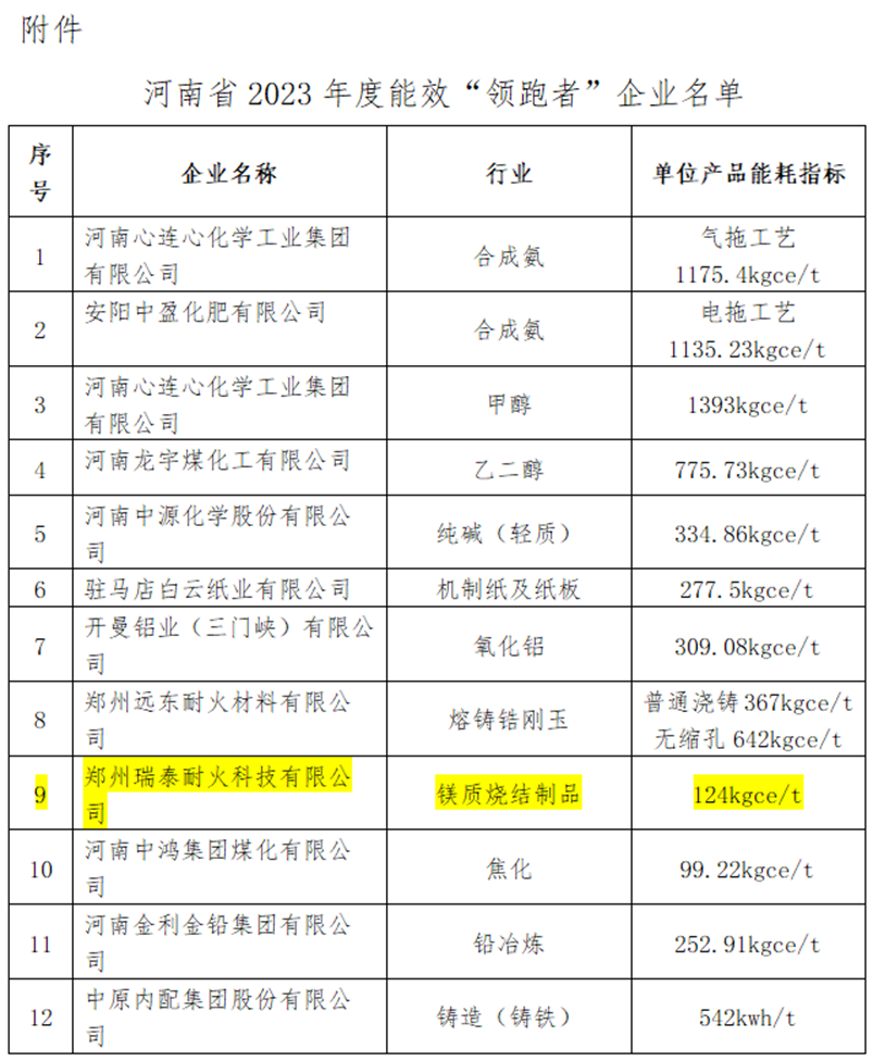 喜讯 | 郑州瑞泰入选2023年河南省工业领域重点用能行业能效“领跑者”企业名单