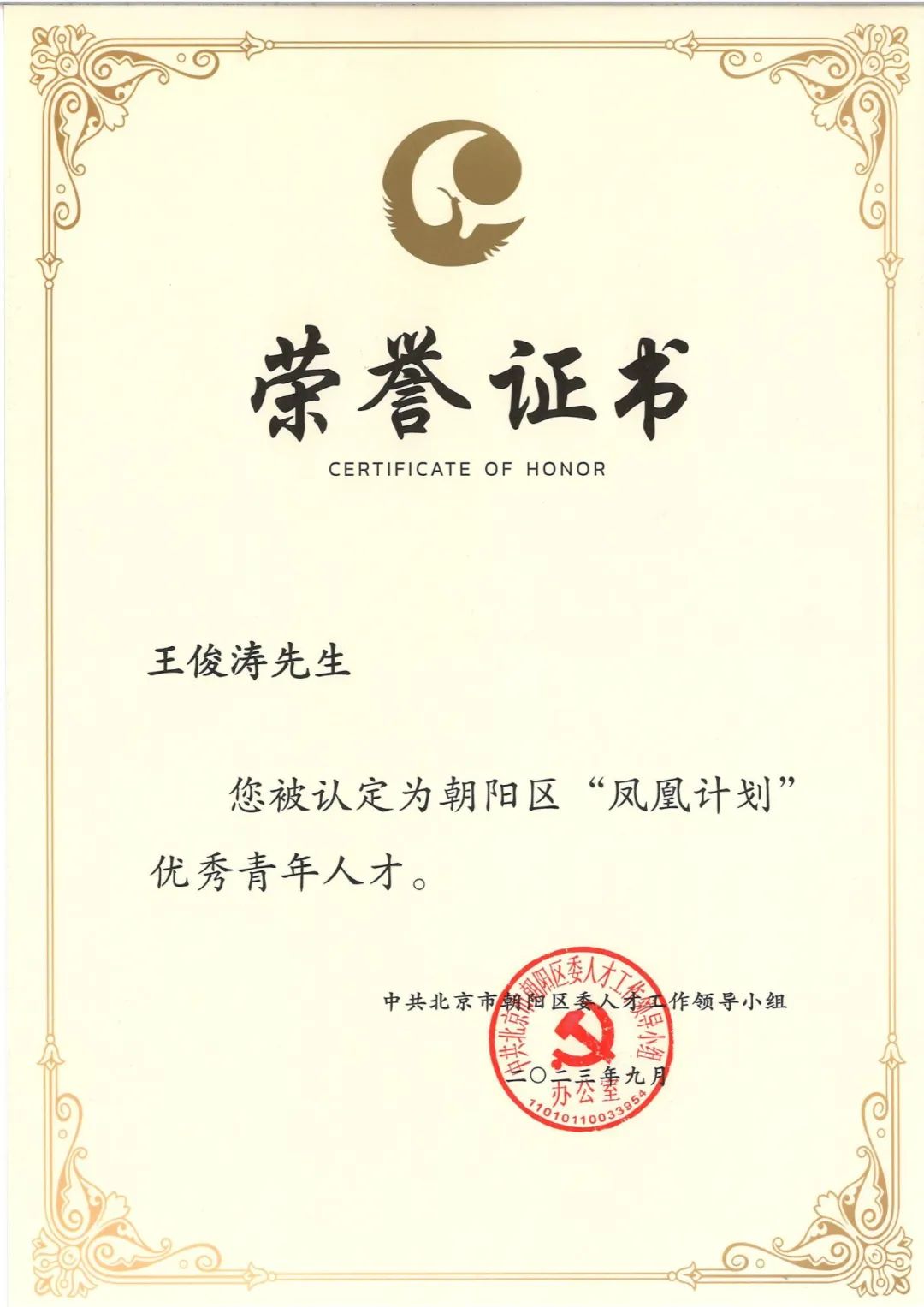 根据北京市朝阳区高层次人才认定程序,经层层筛选,综合考察,瑞泰科技王俊涛同志入选北京市朝阳区2023年“凤凰计划”优秀青年人才。