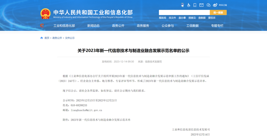 喜讯 | 郑州瑞泰入选工信部2023年新一代信息技术与制造业融合发展示范名单