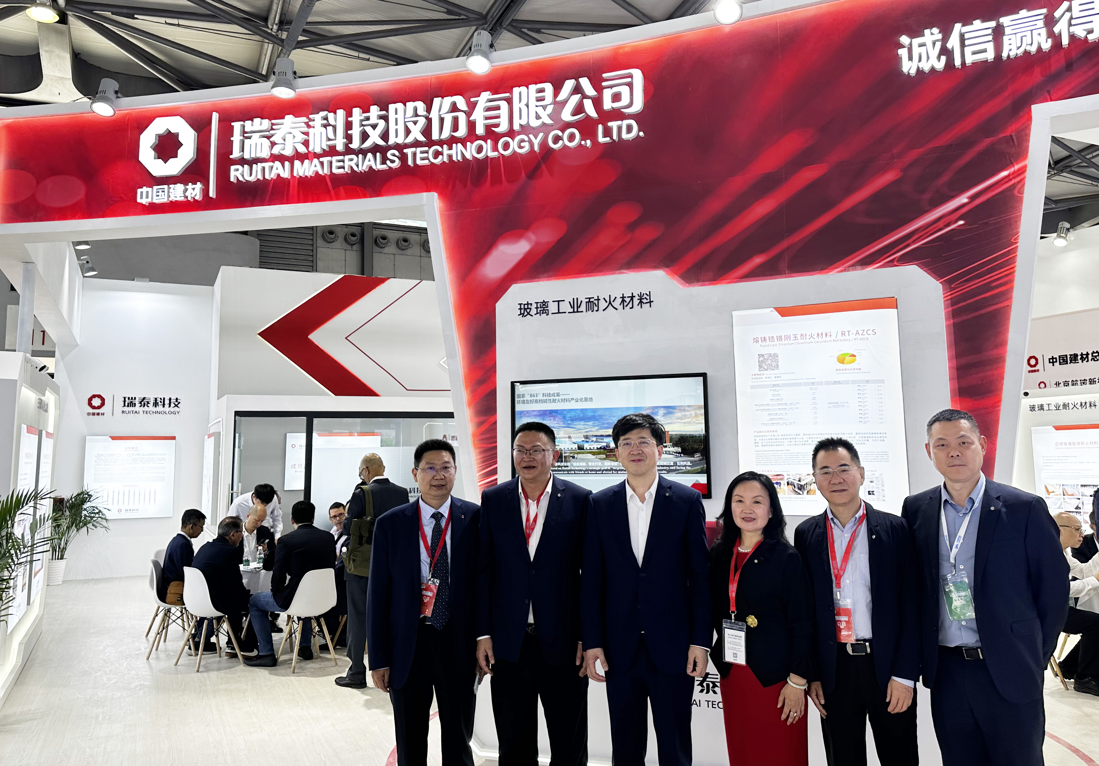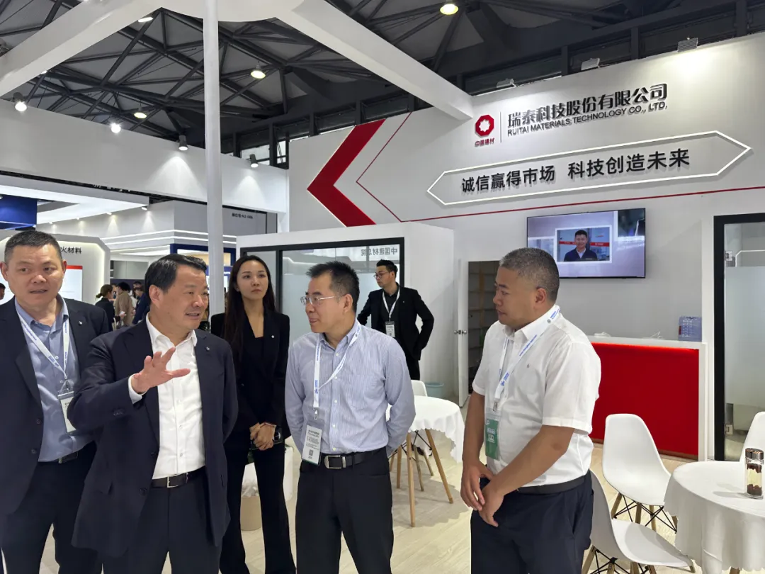 展会期间,中国建材集团首席科学家、中国工程院院士彭寿,中国建材集团总经理助理、中国建材总院党委书记、董事长郅晓等领导莅临展台参观指导。中国建材总院党委委员、副总经理、瑞泰科技党委书记、董事长宋作宝、瑞泰科技党委委员、副总经理白雪松和瑞泰科技湘潭分公司总经理刘立秋及全体营销人员代表热情接待国内外客户。