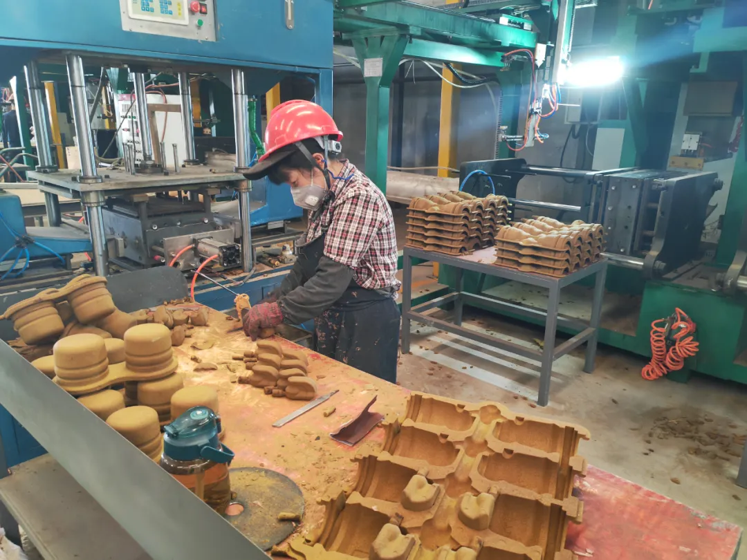 都江堰瑞泰一线员工五一正常在岗,验收班长和砂型模具工讨论砂型的合格率问题,秉持着认真仔细,务实踏实的工作理念为提高砖型合格率把好第一关。