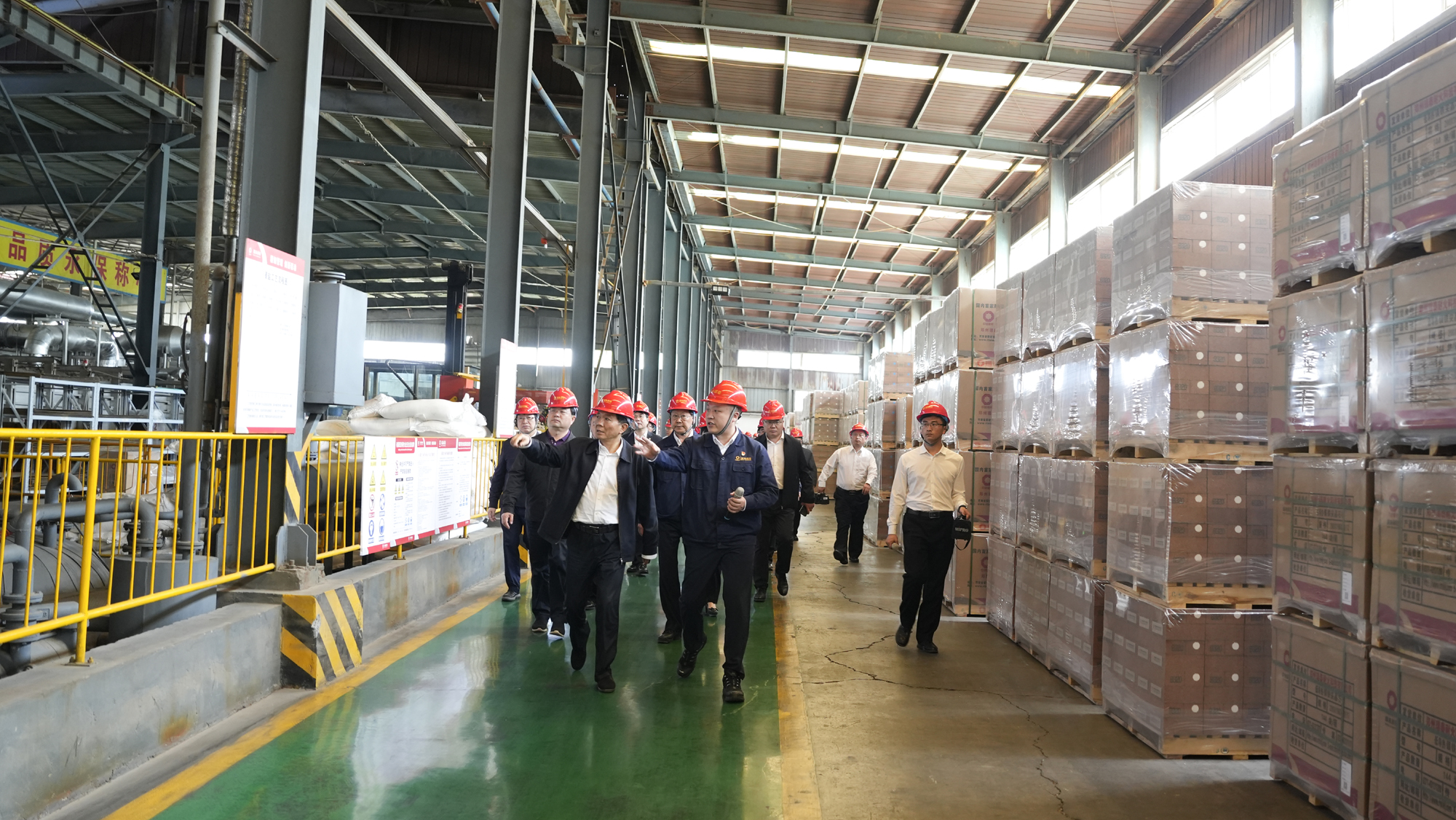 孙金龙一行在相关负责人的陪同下深入生产车间,详细了解了企业的生产工艺流程、环保设施建设运行等情况。