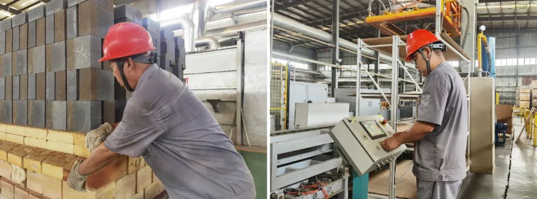 河南瑞泰车间内,闷热之气弥漫于每一处角落,出检工李峰、装车工胡新亮、装车工张宗杰、机台手刘胜利笑面高温,坚守岗位。
