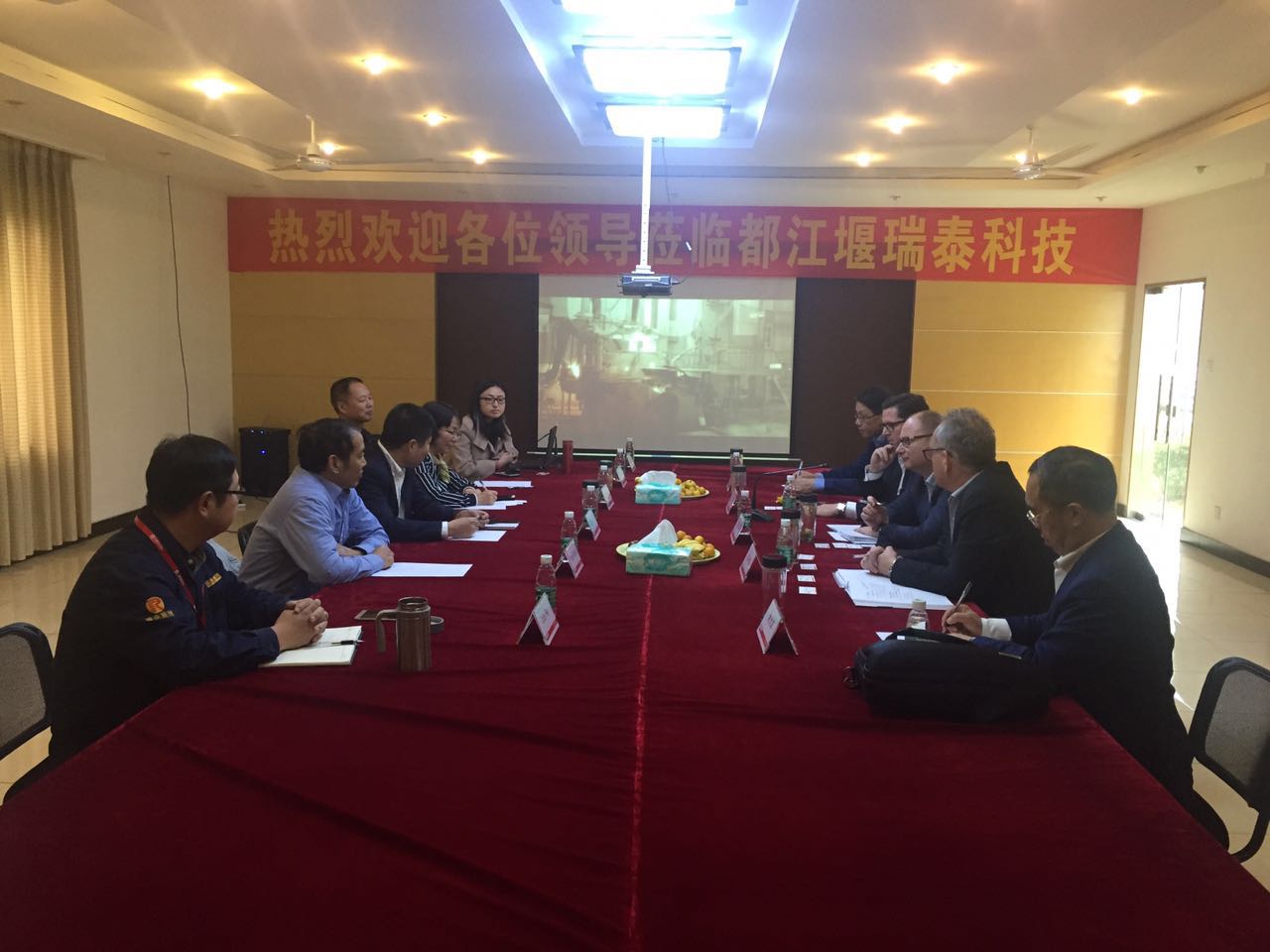 参加接待的有瑞泰科技副董事长冯中起、总经理佟立金、总经理助理兼运营管理中心副经理王晓红、都江堰瑞泰总经理罗飞等。