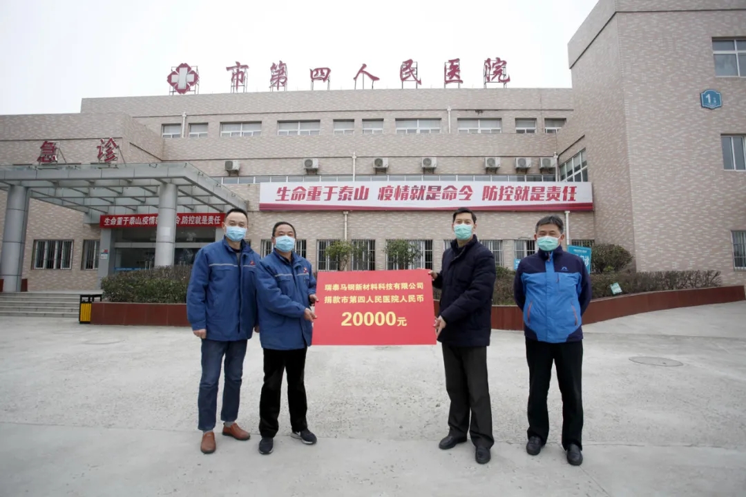 为打赢这场疫情防控阻击战,以实际行动践行国有企业的责任担当,积极支持做好疫情防控工作,3月4日,瑞泰马钢充分弘扬“一方有难,八方支援”的传统美德和奉献精神,向马鞍山市雨山区捐赠20万元整,用于一线医务人员、环卫工人、交警和民警的防疫物资的购买,以实际行动支援疫情防控工作。此前还于3月3日,向马鞍山市第四人民医院捐款2万元,慰问辛苦战斗在防疫一线的医务人员。同时,公司领导、干部和党员充分发挥带头在前的先锋模范作用,积极响应支持湖北疫情防控捐款的倡议,及时通过微信、支付宝等电子网络方式献上自己的一份爱心。在他们的带动下,广大职工也纷纷自愿为抗击疫情进行献爱心捐款,可谓“众志成城战疫情,人人参与献爱心。”截止3月3日,瑞泰马钢公司共收到个人捐款22540元,其中党员捐款已分别上缴雨山经开区党工委和马钢集团党委。