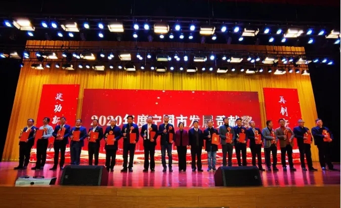 会议对获得2020年度宁国发展功勋奖、发展贡献奖、亩均英雄、招商引资“十新”、科技创新“十佳”的企业进行了表彰。其中,安徽瑞泰新材料科技有限公司董事长张金龙等17名同志荣获 “2020年度宁国市发展贡献奖”。市委市政府向全市企业家发出了“建功新时代、再创新辉煌”的倡议,号召全市企业家站在新的历史起点上,更加紧密地团结在以习近平同志为核心的党中央周围,高举中国特色社会主义伟大旗帜,在市委市政府的坚强领导下,发扬“孺子牛拓荒牛老黄牛”精神,以不怕苦、能吃苦的牛劲牛力,开拓进取、奋力前行,扬鞭奋蹄,以优异成绩向党的百年华诞献礼。